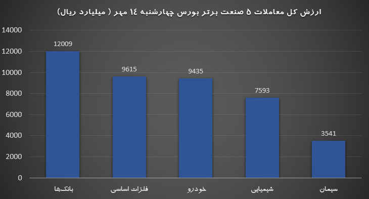 امروز نمادهای شرکت سرمایه گذاری مالی سپهر صادرات (وسپهر)، بیمه پاسارگاد (بپاس)، تولید نیروی برق دماوند (دماوند)، بانک دی (دی)، گروه سرمایه گذاری میراث فرهنگی (سمگا)، بیمه کوثر (کوثر)، اعتباری ملل (وملل)، هلدینگ صنایع معدنی خاورمیانه (میدکو)، سهامی ذوب آهن اصفهان (ذوب)، شرکت سرمایه توسعه و عمران استان کرمان (کرمان)، توکاریل (توریل) و جنرال مکانیک (رنیک)، بیمه تجارت نو (بنو)، شهرسازی و خانه سازی باغمیشه (ثباغ) و آتیه داده پرداز (اپرداز) با تاثیر مثبت بر شاخص این بازار همراه بودند.