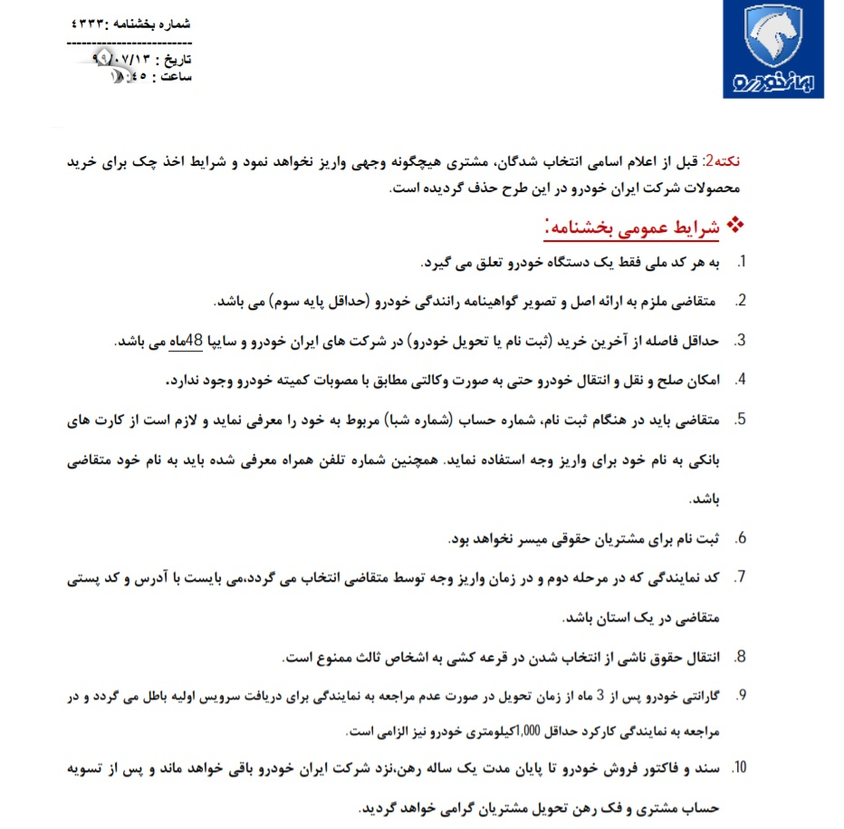 این در حالی بود که شرط پیش پرداخت وجه خودرو قبلاً نیز در کمیته خودرو مصوب شده و قرار بود 50 درصد مبلغ خودرو در زمان ثبت نام توسط متقاضیان پرداخت شود اما این شرط در خردادماه با نظر حسین مدرس خیابانی سرپرست اسبق وزارت صنعت ملغی شد.
