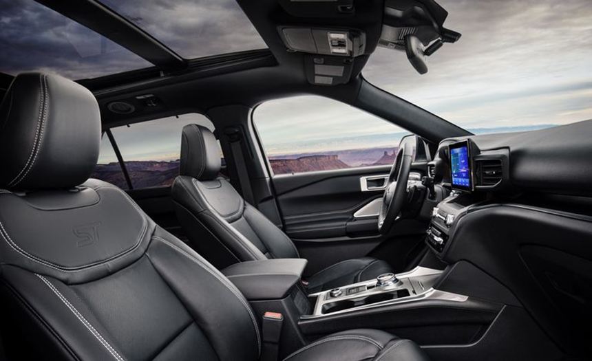 برای سرگرمی، صفحه نمایش لمسی ۸.۰ اینچی استاندارد شامل قابلیت Apple CarPlay و Android Auto و نقطه اتصال Wi-Fi است. این سیستم هر دو جذاب و پاسخگو است، اما به همان اندازه که میخواهیم بصری نیست. یک کنترل کننده چرخشی در این زمینه کمک میکند. برای به دست آوردن صفحه اختیاری ۱۰.۱ اینچی به صورت عمودی، باید به Platinum یا ST ارتقا دهید. هنوز هم، هر مدل با ناوبری فعال شده با صدا و همچنین یک سیستم سرگرمی صندلی عقب در دسترس است. به غیر از Explorer پایه، یک سیستم صوتی B&O ۱۲ بلندگو به صورت استاندارد ارائه میشود.