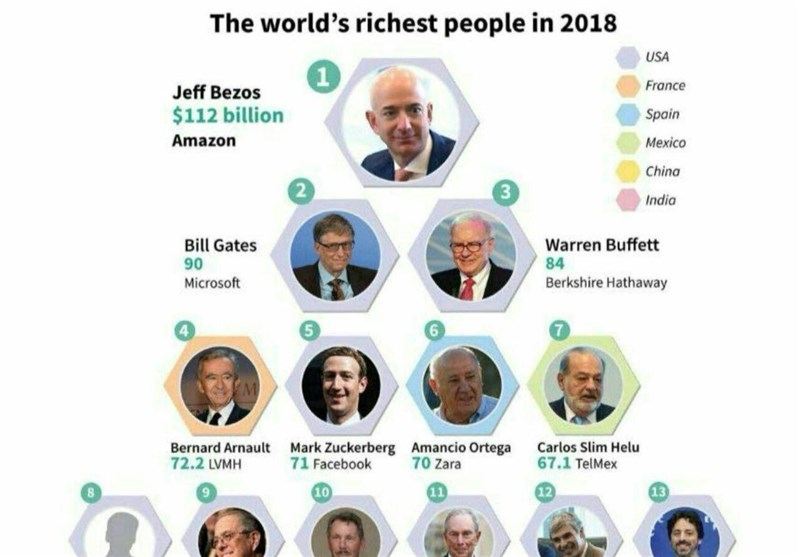 تعداد میلیاردرها نیز به رکورد جدیدی یعنی 2189 نفر رسیده در حالی که این تعداد در سال 2017، 2158 نفر بوده است.
