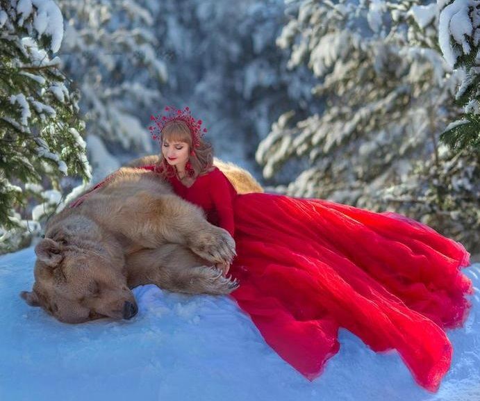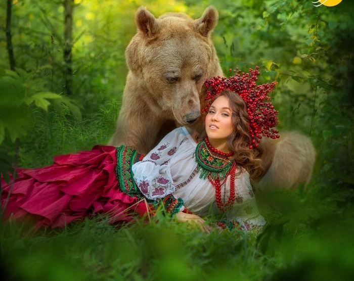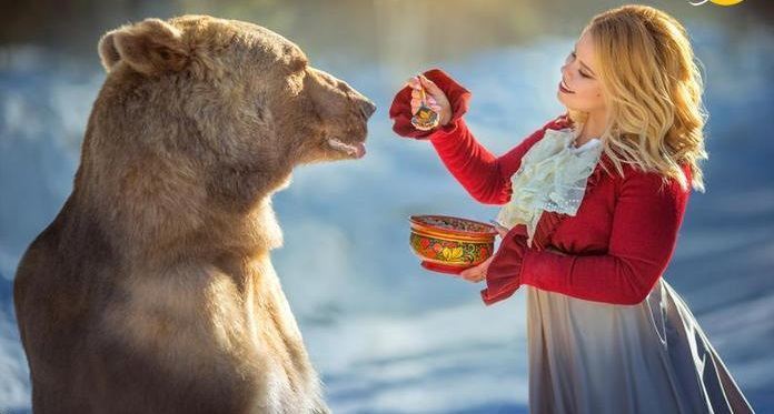 به گزارش سایت طلا به نقل از فرارو، این خرس قهوه ای که 28 ساله است استپان نام دارد. میلا ژدانوا عکاس اهل مسکو با صاحبان این خرس دوست شده و از خرس آنها برای عکاسی در کنار مدل ها استفاده می کند.