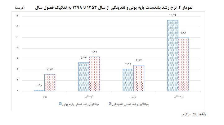 از مهم ترین علل افزایش نرخ رشد شاخص قیمت مصرف کننده در فصل بهار را می توان رشد پایه پولی و نقدینگی و همچنین افزایش نرخ ارز دانست. نرخ رشد نقدینگی و پایه پولی در فصل بهار، هر دو بالاتر از نرخ رشد بلندمدت بوده است.