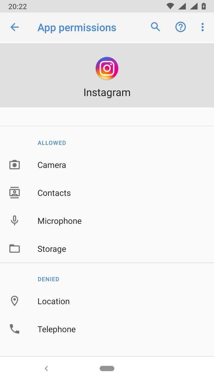 برای مثال در عکس بالا می توانید مشاهده کنید که برنامه اینستاگرام چه دسترسی هایی را تقاضا می کند و شما می توانید این دسترسی ها را فعال کرده و یا آن ها را محدود کنید.