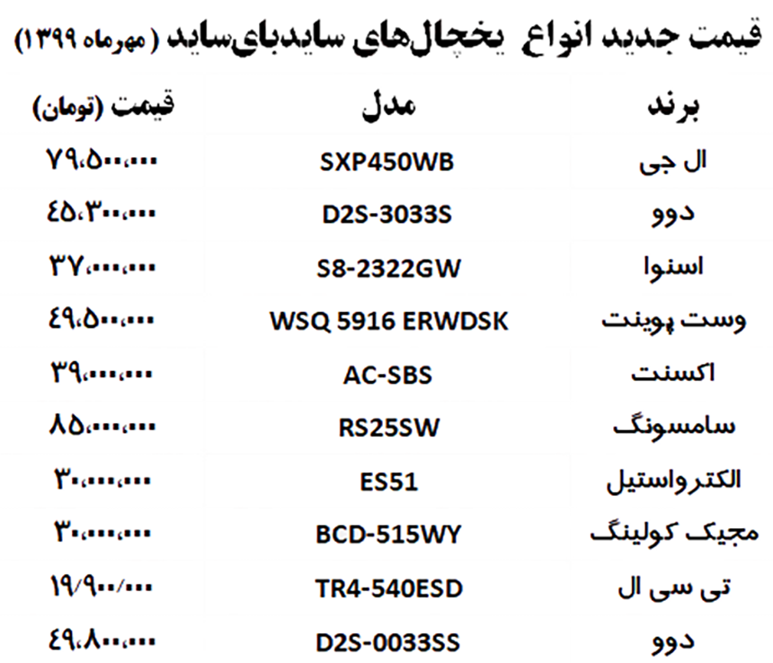قیمت انواع یخچال فریزرهای سایدبایساید
