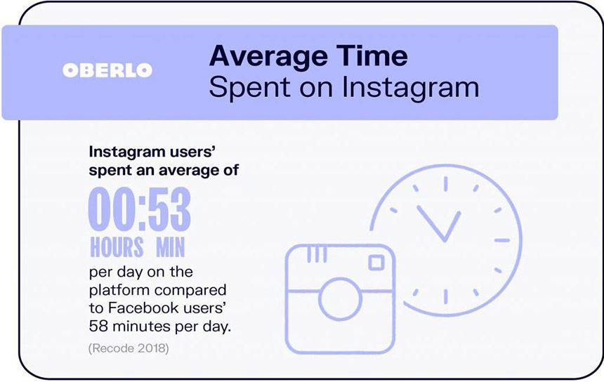 مدت زمانی که کاربران اندروید به اینستاگرام اختصاص میدهند به فیس بوک است – در ژوئن ۲۰۱۸ کاربران فیس بوک به طور متوسط ۵۸ دقیقه در روز در این سایت حضور دارند که این زمان برای اینستاگرام ۵۳ دقیقه در روز کاربران اینستاگرام است.