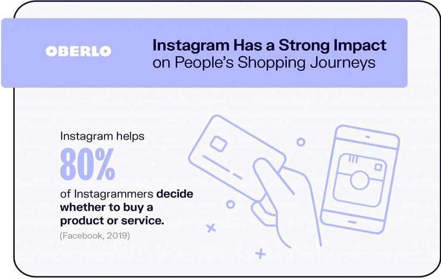 اینستاگرام به ۸۰ ٪ از اینستاگرامرها کمک میکند تا در مورد خرید محصول یا خدمات تصمیم بگیرند (فیس بوک، ۲۰۱۹). کاربران اینستاگرام میگویند که بر اساس چیزی که هنگام مرور برنامه مشاهده کرده اند، تصمیم به خرید گرفته اند. بازاریابی تأثیرگذار نقش مهمی در تأثیرگذاری در این تصمیمات خرید نیز دارد.