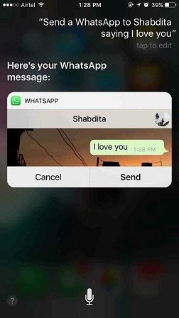 4- بدون اینکه چیزی تایپ کنید ، به کسی پیام WhatsApp ارسال کنید. بگویید "Hey Siri" (iOS) یا "OK Google" (Android) و سپس ، از او بخواهید "WhatsApp را" ارسال کند و به دنبال آن نام مخاطب شما باشد ، و سپس "گفتن" و سپس پیام خود را بگویید.
