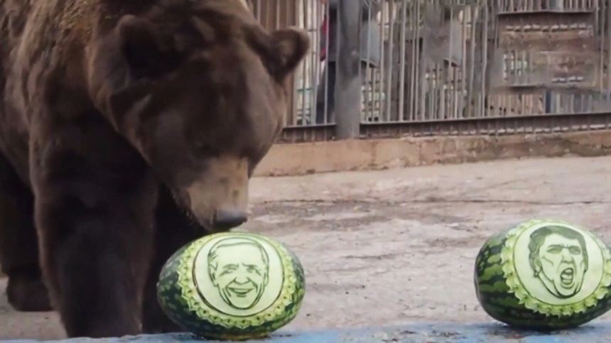 به گزارش سایت طلا به نقل از باشگاه خبرنگاران جوان،مسئولان یک باغ وحش در کراسنویارسک روسیه، دو هندوانه را که بر روی آنها چهرههای جو بایدن نامزد دموکراتها و دونالد ترامپ نامزد جمهوری خواهان در انتخابات ریاست جمهوری سال ۲۰۲۰ آمریکا که در روز سوم نوامبر برگزار میشود را در جلوی یک ببر و یک خرس گذاشتند.