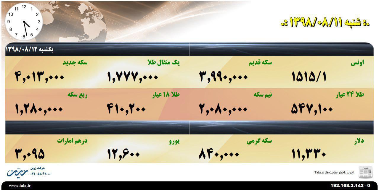 تابلو های اعلام نرخ طلا و ارز با به روز آوری قیمت ها در لحظه