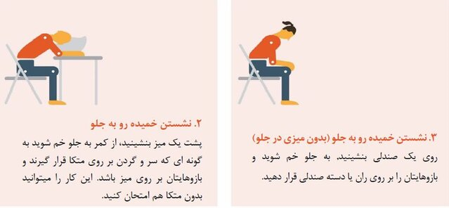 بر اساس راهنمای توانبخشی بعد از بهبودی از کووید ۱۹، تصاویر زیر وضعیتهایی هستند که میتوانند تنگی نفس را کاهش دهند. همه آنها را امتحان کنید تا ببینید کدام یک میتواند به شما بیشتر کمک کند.