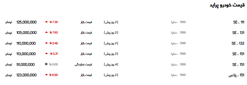 نرخ پراید ۱۳۱ نیز برابر با ۱۰۵ میلیون تومان گزارش شد و پراید ۱۳۲ نیز با نرخ ۱۱۰ میلیون تومان فایل شد.