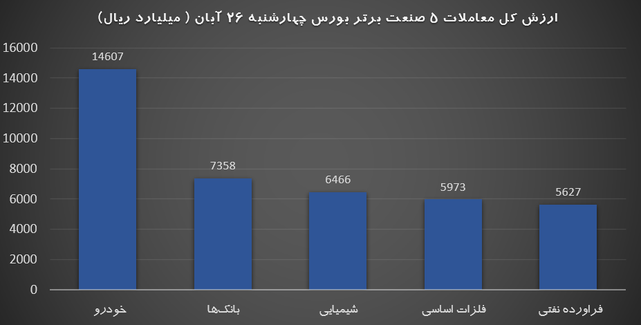 همچنین نماد سرمایه گذاری مالی سپهر صادرات (وسپهر)، صنعتی مینو (غصینو)، تولید نیروی برق دماوند (دماوند)، ریل سیر کوثر (حسیر)، پالایش نفت شیراز (شراز)، فرابورس ایران (فرابورس)، تولیدات پتروشیمی قائد بصیر (شبصیر)، سرمایه گذاری پویا (وپویا)، نفت پاسارگاد (شپاس) و شرکت بیمه اتکایی امین (اتکام) تاثیر منفی بر شاخص این بازار را داشتند.