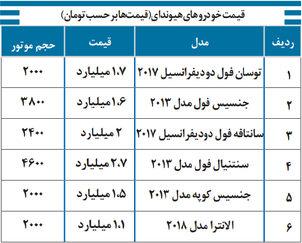 به گزارش موبوایران ،جدیدترین قیمت خودروهای کیا،هیوندای و تندر 90 به شرح جدول زیر است