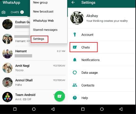 به سادگی به Whatsapp MENU بروید.