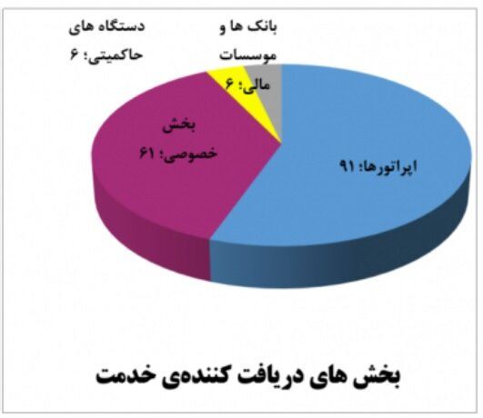 همچنین بخشهای دریافتکننده خدمات از مرکز ماهر شامل اپراتورها، بخش خصوصی، دستگاههای حاکمیتی و بانکها و موسسات مالی میشود که تعداد دریافت این خدمات در نمودار زیر آمده است.