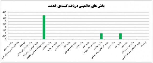 بخشهای حاکمیتی دریافتکننده خدمات از مرکز ماهر هم وزارت ارتباطات و فناوری اطلاعات در صدر و به دنبال آن، وزارت بهداشت و وزارت نفت قرار دارد.