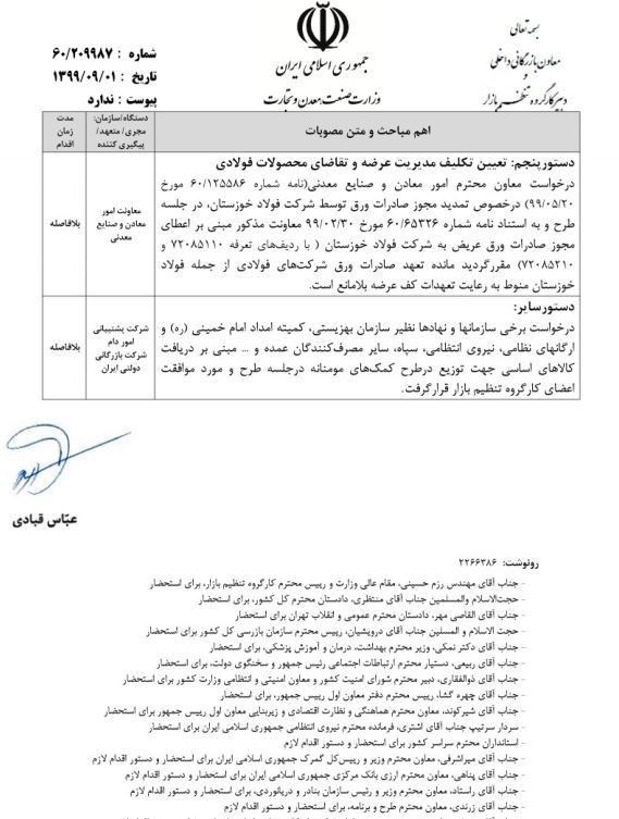 همچنین مقرر شد، سقف قیمتهای جهانی خرید این نهادهها در سامانه جامع تجارت بهصورت مستمر توسط کارگروه نظارت و تخصیص ارز، بررسی و بِروز شود.
