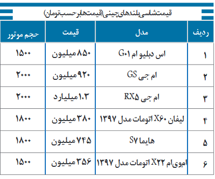 جدیدترین قیمت محصولات ایران خودرو و شاسی بلندهای چینی و کره ای