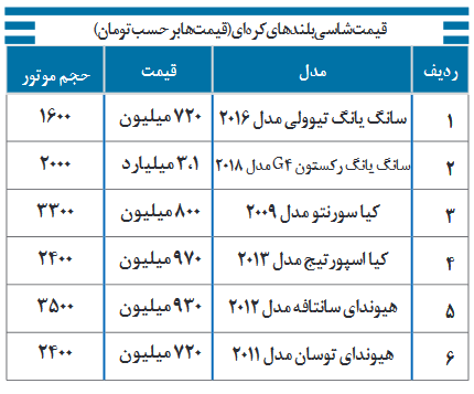 قیمت انواع شانسی بلند در بازار خودرو دوشنبه ۳ آذر ۹۹ را مشاهده میکنید:
