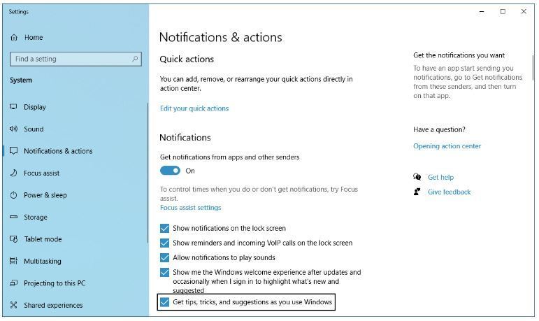 4- اعلان ها و نکات ویندوز 10 را باید بردارید