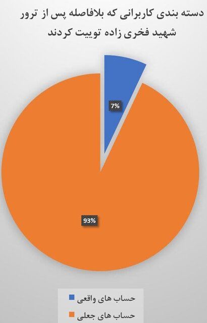 جالبتر اینکه نزدیک ٩٣ درصد این توئیتها مربوط به حسابهای مجعول و بیشناسنامه با سابقه کمتر از یکسال و عمدتا با منشاء خارجی بودهاست.