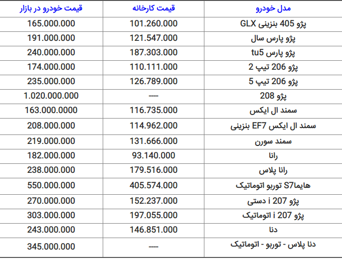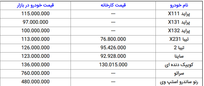 قیمت روزانه محصولات سایپا و ایران خودرو