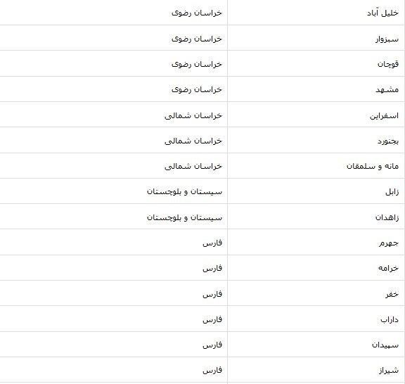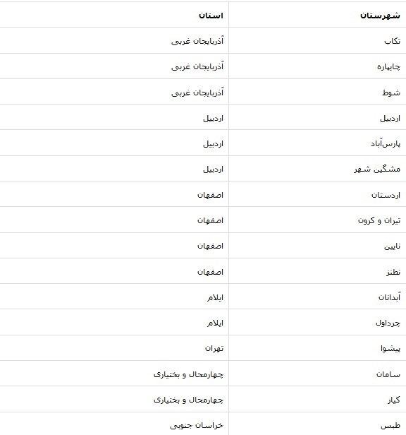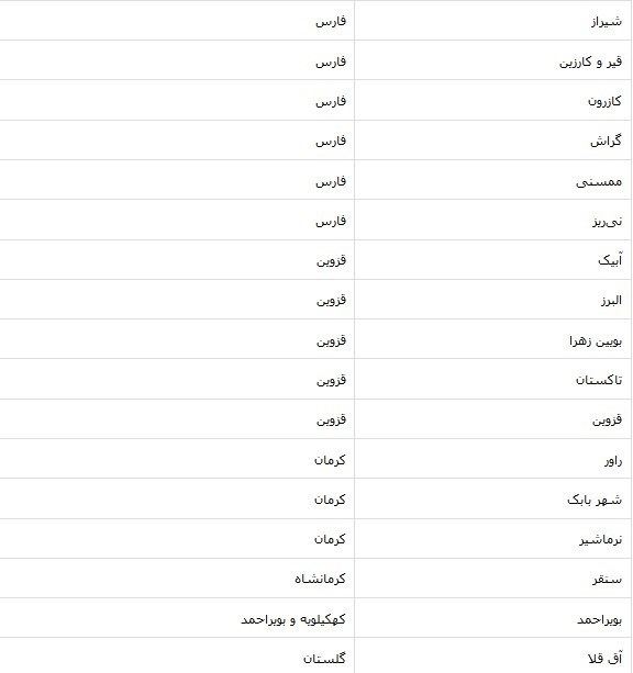 شهرستانهایی که از شنبه 15 آذر در وضعیت قرمز خواهد بود: