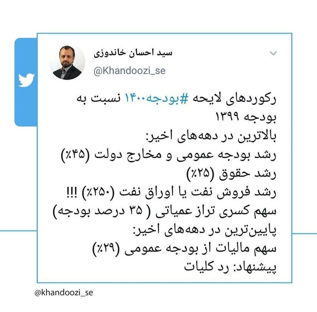 « رکوردهای لایحه بودجه 1400 نسبت به بودجه 1399
