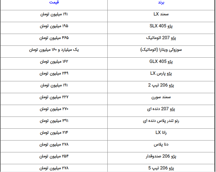 نائب رئیس اتحادیه نمایشگاه داران خودرو گفت: به دلیل روند نزولی قیمت خودرو، معاملات در بازار متوقف شده است.گرانترین مدل پراید مربوط به مدل ۱۵۱ پلاس میشود که امروز با قیمت ۱۱۲ میلیون تومان به فروش میرسد. کوئیک دنده ای R در بازار ۱۴۱ میلیون تومان و پژو 405 SLX نیز ۱۹۵ میلیون تومان قیمت گذاری شده است.
