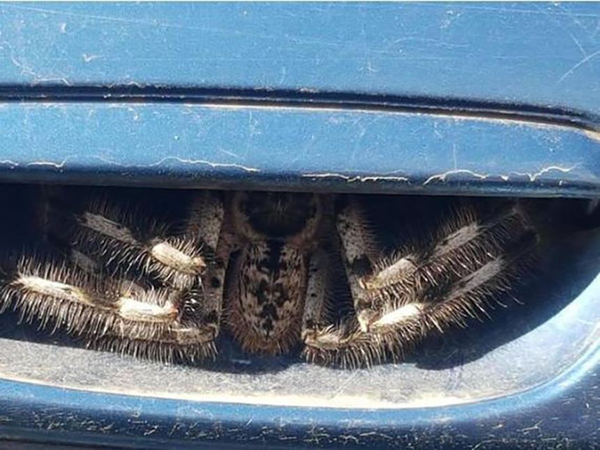 این خانم به نام «کریستن جونز» چندین عکس از عنکبوت در درب اتومبیل خود گرفت و آنها را در صفحه «حیوانات را بشناس» در فیس بوک قرار داد و زیر آن نوشت: «عنکبوت غول پیکر»