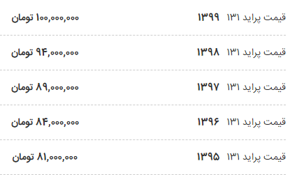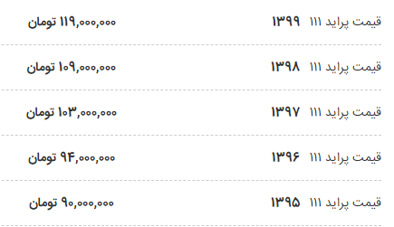گرانترین پراید در بازار اکنون پراید ۱۱۱، مدل ۹۹ است که ۱۱۹ میلیون تومان قیمت دارد.