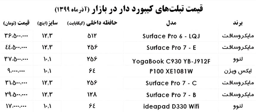 جدیدترین قیمت انواع تبلت کیبورد دار در بازار
