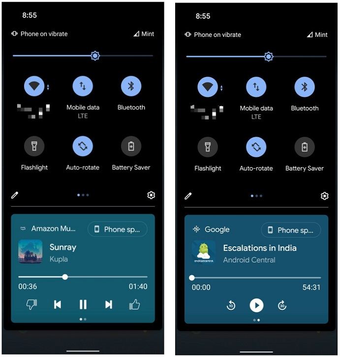 اگر چندین رسانه پخش همزمان داشته باشید و اگر با یک برنامه مانند Spotify یا Pocket Casts کار خود را تمام کنید ، این بسیار عالی است. با این وجود نمی توانید کنترل های رسانه را دور بکشید ، پس از کشیدن کامل سایه اعلان باید روی آن ضربه بزنید و نگه دارید. کاملاً بصری به اندازه کشیدن یک نماد اعلان دور نیست ، اما با این وجود همچنان یک گزینه است.
