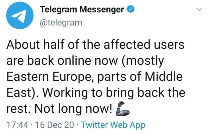 تلگرام گفته در تلاش است تا کاربران را به شبکه بازگرداند. هنوز مشخص نیست که چه دلیلی موجب این اختلال شده است