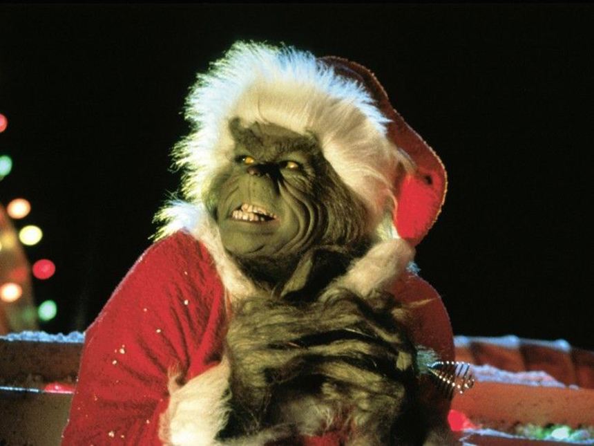 نقش آفرینی به یاد ماندنی جیم کری در نقش گرینچ به قیمت آن تمام شد که در طول فیلمبرداری به شدت اذیت شود. هشت ساعت طول میکشید که این گریم به همراه قسمتهای مصنوعی به طول کاملا نصب شوند و به همین دلیل جیم کری آن را زنده به گور شدن روزانه توصیف کرده بود. سازندگان فیلم از ماموران سازمان سیا کمک گرفتند که جیم کری را برای تحمل شکنجه تمرین دهند.