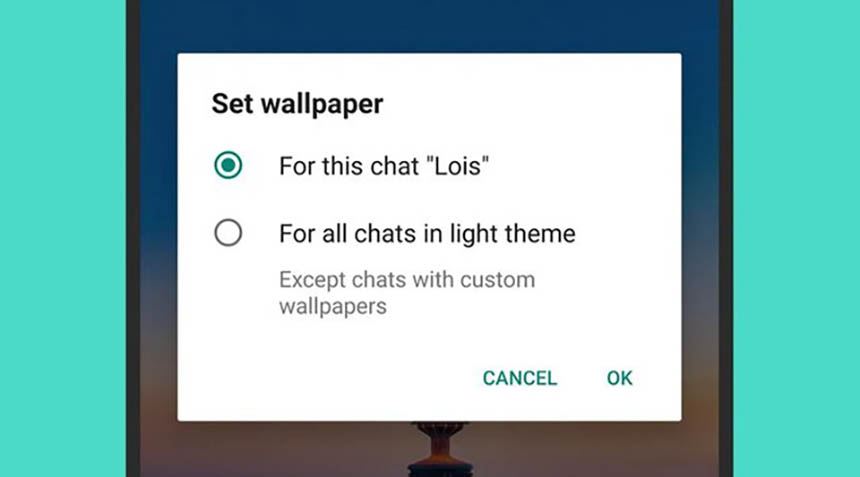 واتساپ اکنون به کاربران اجازه می دهد تصویر زمینه یا همان والپیپر هر مکالمه را تغییر دهند. به این ترتیب کاربران می توانند یک تصویر زمینه برای همکارانشان و یک تصویر زمینه برای اعضای خانواده شان داشته باشند. این اقدام احتمال این که پیام را اشتباهی به فرد اشتباهی ارسال کنید را کاهش می دهد. در دستگاههای اندرویدی می توانید صفحه یک چت را گشوده و سه نقطه ای که در گوشه بالای سمت راست وجود دارد را زده و والپیپر را انتخاب کنید. در دستگاههای iOS چت را گشوده و نوار بالای صفحه را لمس کرده و سپس وارد گزینه والپیپر و صدا شوید.