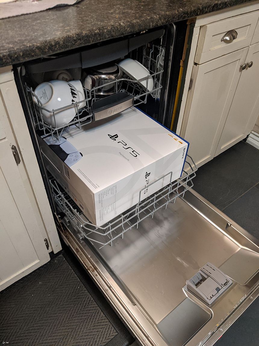 آن‌ها در اقدامی عجیب این PS۵ را در ماشین ظرفشویی خانه خود پنهان کردند. آن‌ها در توضیح این تصویر نوشتند: «ما می‌دانیم که نوجوانان هرگز قادر به پیداکردن هدیه خود در چنین مکانی نمی‌شوند!» انتشار این تصویر در شبکه اجتماعی ردیت موجب بهت و حیرت کاربران شد. یکی از کاربران نوشت: «جای این PS۵ امن و مطمئن است تا زمانی که خود والدین این نوجوان تصمیم بگیرند تا آن را به پسرشان تحویل دهند!»