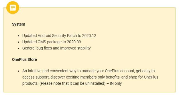 وان پلاس هم اکنون با شماره ساخت 10.5.10.AC01DA در هند ، 10.5.10.AC01BA در اروپا و 10.5.10.AC01AA هرجای دیگر OxygenOS 10.5.10 را به Nord عرضه می کند. تغییر اساسی در همه مناطق ، گنجاندن سطح پچ امنیتی دسامبر اندروید است که از 7 دسامبر در تلفن های Pixel گوگل ارائه شد. تغییرات کامل این پچ امنیی در لیست زیر نشان داده است :