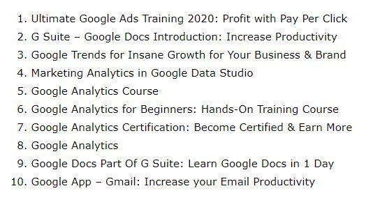این بسته 10 دوره ای با بیش از 36 ساعت آموزش ، برخی از ویژگی های Google را که بسیاری از خوانندگان حتی نمی دانند وجود دارد کشف می کند. در این میان چهار دوره در مورد Google Analytics وجود دارد ، ابزار تجزیه و تحلیل ترافیک که توسط اکثر قریب به اتفاق کاربران وب استفاده می شود. همچنین دوره استفاده از Google Data Studio ، Google Docs ، Google Ads و موارد دیگر وجود دارد.