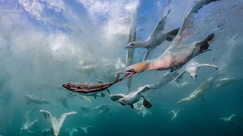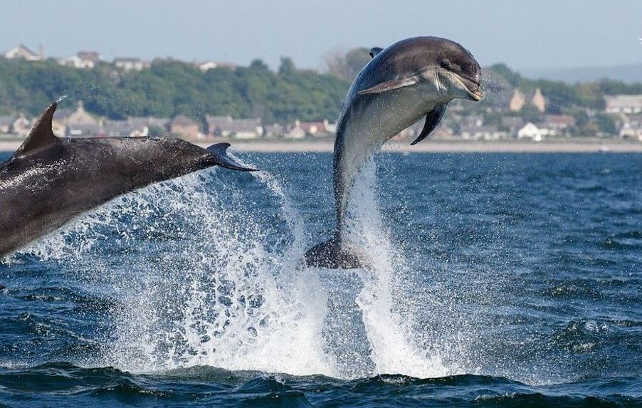 از تصاویر شاد این مجموعه تصاویر یک جفت دلفین اسکاتلندی است که در حال انجام حرکات آکروباتیک در ساحل جزیره سیاه نزدیک اینورنس هستند.