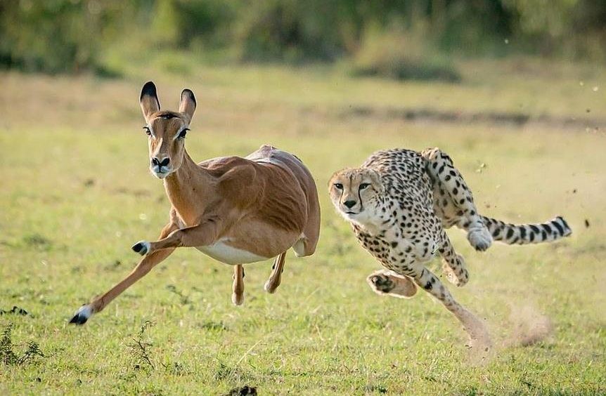 در یکی از تصاویر نیز یک ایمپالای باردار در حال فرار از دست یوزپلنگ است. این عکس در حیات وحش کنیا ثبت شده است.