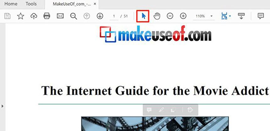 برای انتخاب تصاویر و متن فایل PDF خود، روی ابزار انتخاب در بالای برنامه کلیک کنید.