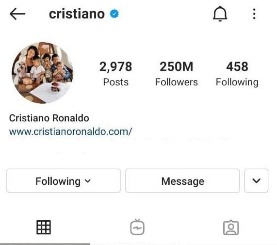در ادامه تصویری از صفحه کریستین رونالدو را مشاهده میکنید: