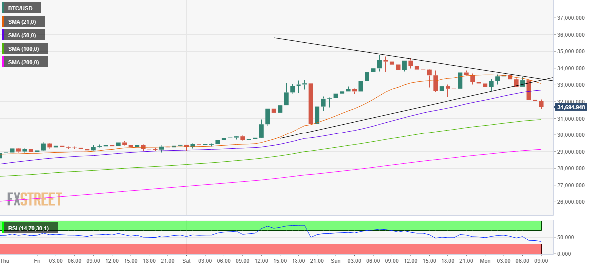 در صورت افت قیمت بازار ها می توانند برای خرید بیشتر خود را آماده کرده و در نتیجه آن بیت کوین هدف صعودی 32,695 دلار را در پیش روی خود خواهد داشت.