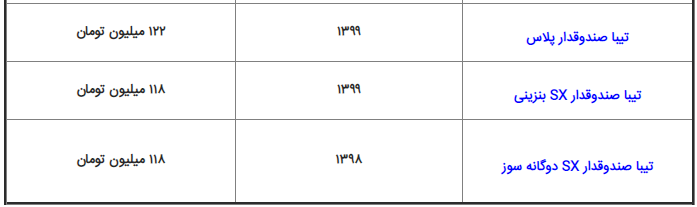در بین خودروهای تیبا هم که با همان قیمت روز گذشته فروخته میشوند، تیبا هاچ بک پلاس مدل ۱۳۹۹ با قیمت ۱۳۲ میلیون تومان، گرانترین مدل به شمار میآید.