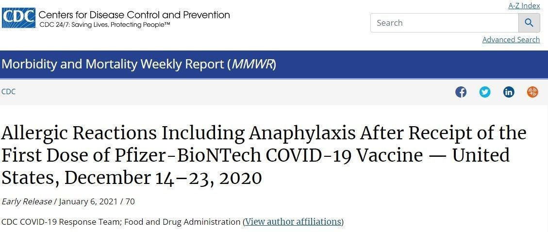 طبق گزارش مرکز کنترل و پیشگیری از بیماری در آمریکا تاکنون مواردی از واکنشهای شدید آلرژیک میان دریافتکنندگان واکسن فایزر دیده شده است.