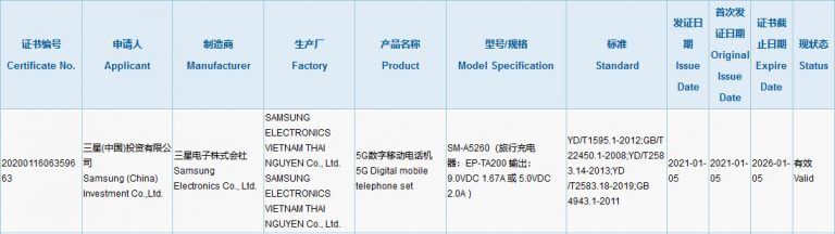 یک نشت اطلاعاتی شماره مدل SM-A5260 را نشان می دهد که از شارژ 15 وات پشتیبانی می کند. اگرچه سند 3C جزئیات دیگری را فاش نکرده است ، اما ظاهر آن نشان می دهد که زمانی زیادی به معرفی نمانده است.