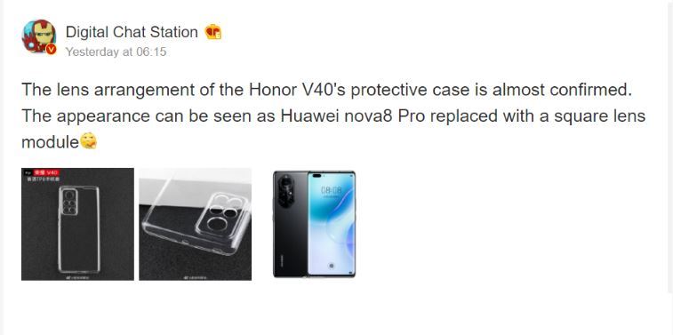 این شرکت در پلت فرم شبکه های اجتماعی Weibo فاش کرد که این گوشی جدید در 18 ژانویه رونمایی می شود. از آنجا که هواوی دیگر مالک آنر نیست و گفته می شود موجودی تراشه های Kirin آن محدود است ، بعید به نظر می رسد V40 دارای 5 نانومتری Kirin 9000 باشد.