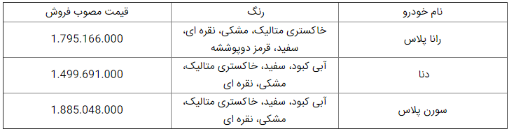 طرح فروش فوق العاده محصولات ایران خودرو مطابق جدول ذیل از روز یک شنبه مورخ ۲۳-۱۰-۹۹ شروع و تا روز پنجشنبه مورخ ۲۵-۱۰-۹۹ ادامه خواهد داشت. حداکثر ۳ روز کاری پس از پایان ثبت نام، قرعه کشی برگزار و اسامی منتخبان اعلام خواهد شد.