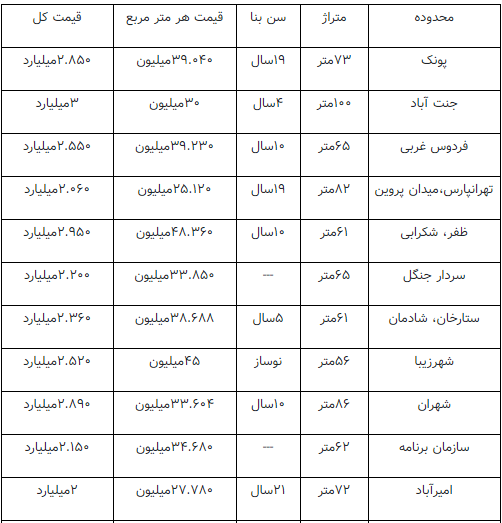 بررسی ها نشان می دهد با توان اقتصادی بین ۲ تا ۳ میلیارد تومان در اکثر مناطق و محلات، متقاضیان قادر به خرید املاک چند ساله و حتی نوسازهای متوسط و کوچک متراژ هستند .